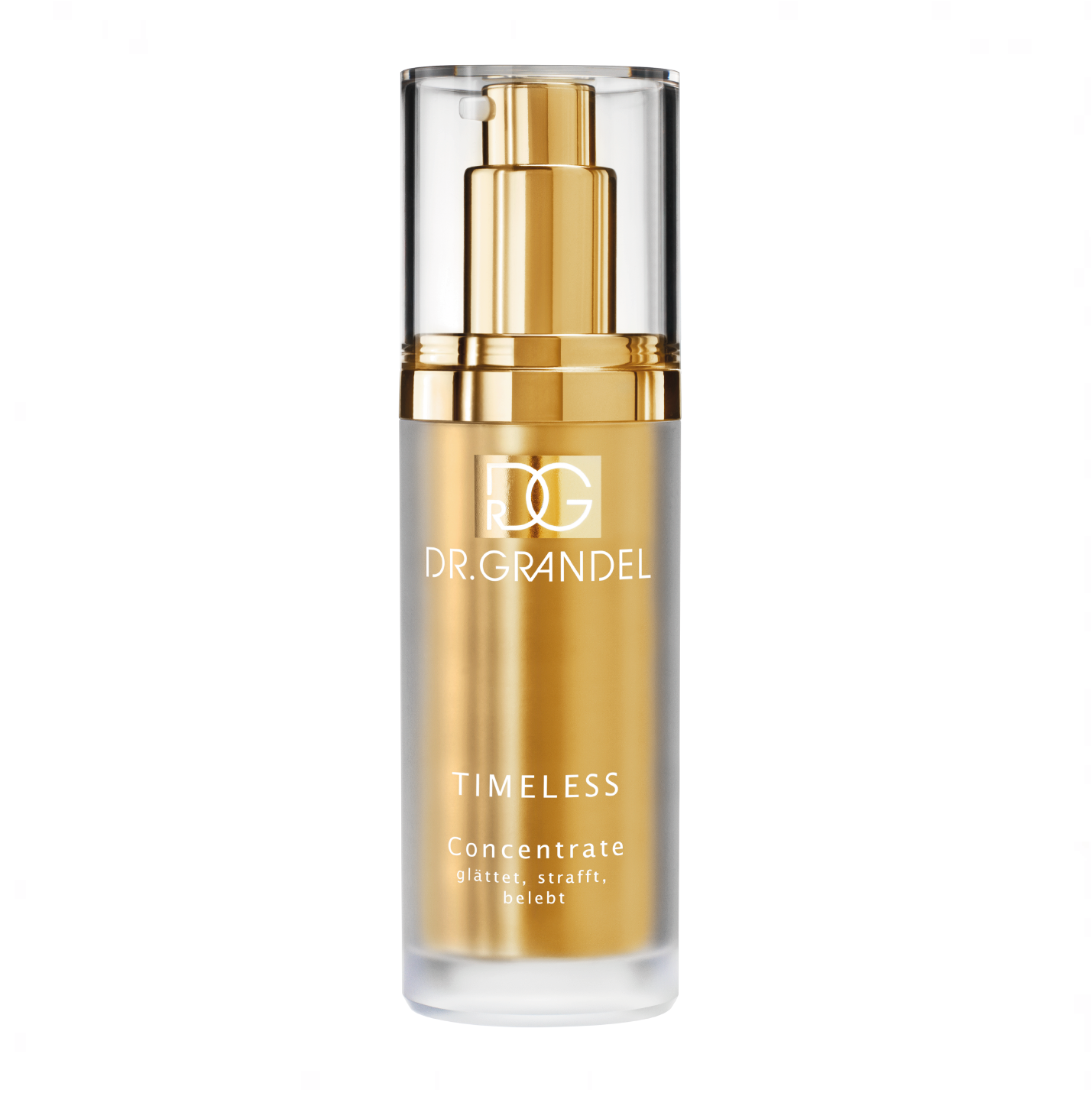 Dr. Grandel Timeless Concentrate har utformats med unika egenskaper för att minimera ålderstecken. Den innovativa formulan jämnar synligt ut fina linjer och små rynkor - särskilt mimikrynkor. Serumet förbättrar hudens elasticitet och fasthet, stödjer cellförnyelse och har en vårdande och mjukgörande effekt. För synligt fastare och jämn hud med vacker lyster.