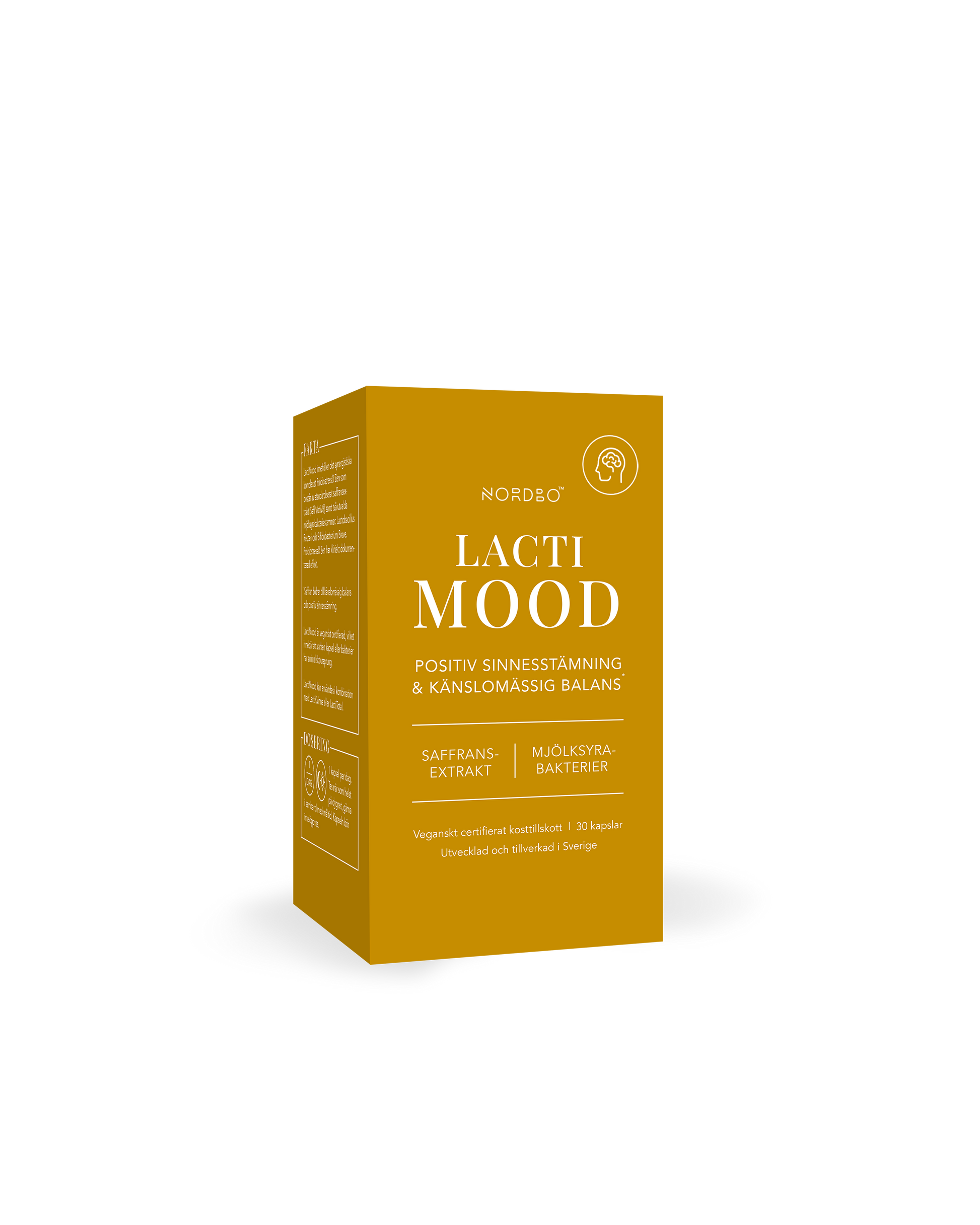 NORDBO LactiMood är framtagen för känslomässig balans och positiv sinnesstämning. Med Probiostress® som kombinerar det standardiserade saffransextraktet Saffr'Activ® med 4 miljarder levande mjölksyrabakterier av de välstuderade stammarna Lactobacillus Reuteri och Bifidobacterium Breve. Saffran innehåller krokiner och safranal och bidrar till att bibehålla känslomässig balans samt positiv sinnesstämning. Endast 1 kapsel dagligen.