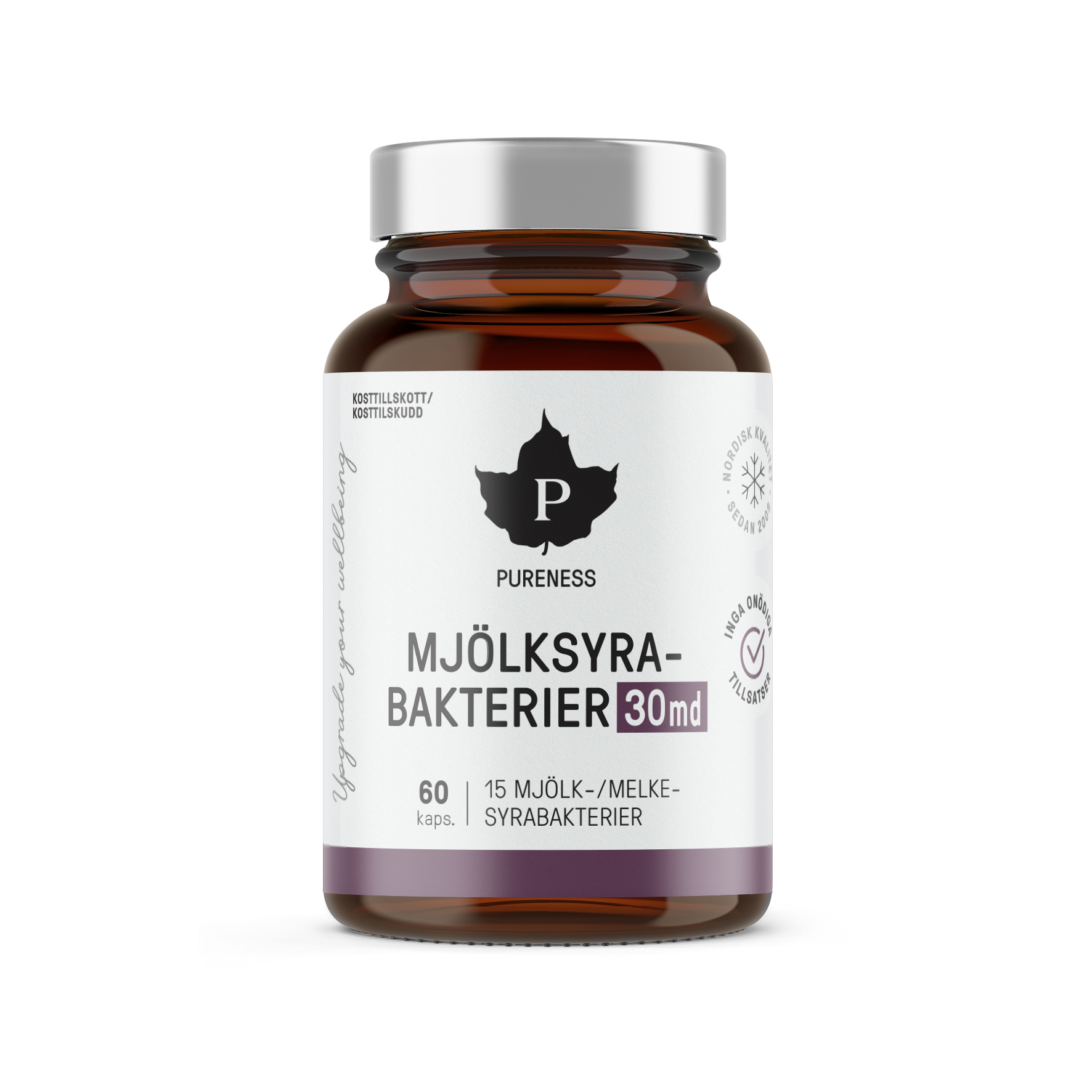 En kapsel innehåller 30 miljarder mjölksyrabakterier. Produkten innehåller 15 kända