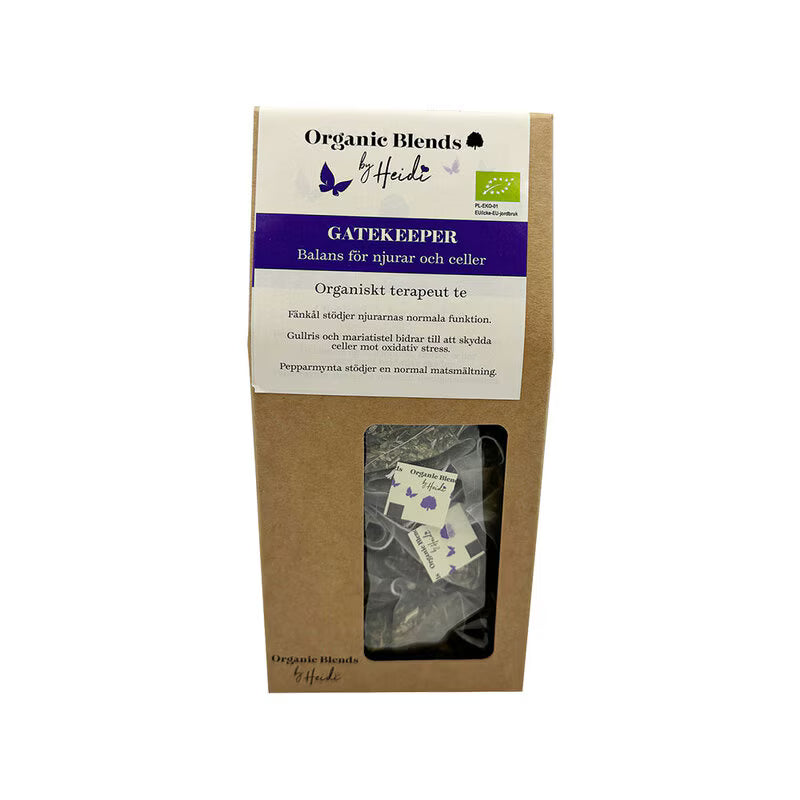 Organic Blends Gatekeeper är ett ekologiskt te med noggrant utvalda örter. Blandningen innehåller fänkål, gullris, mjölktistel & mynta, som tillsammans ger en balanserad & behaglig smak. Fänkål har en mild lakritston medan pepparmynta ger en frisk känsla. Mjölktistel & gullris bidrar till en fyllig & rund smakupplevelse.